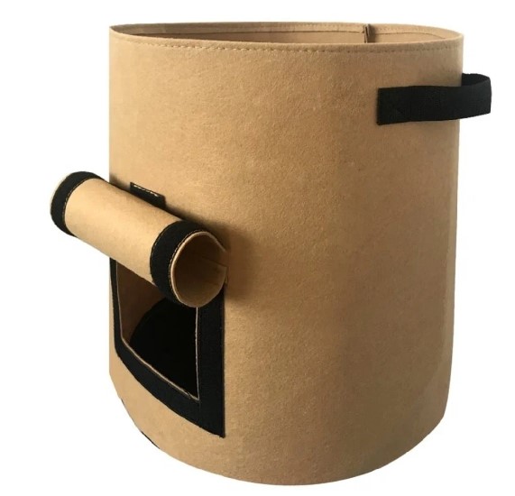 У нас вы можете приобрести мешок-горшок с ручками для посадки. Размер такого мешка - 35 х 29 см, а объём-31,5 л. Выполнен он в коричневом цвете. В нижней части такого мешка есть специальное окошко, через которое очень удобно собирать урожай, а также удобные ручки для переноски. Изготовлен он из материала, который защищён от ультрафиолетовых лучей, он не гниёт и не портится от разнообразных внешних воздействий. Если в нашем каталоге вы не нашли ту сумку, которая вам требуется, вы всегда можете заказать её у нас, мы изготовим её по индивидуальным параметрам.